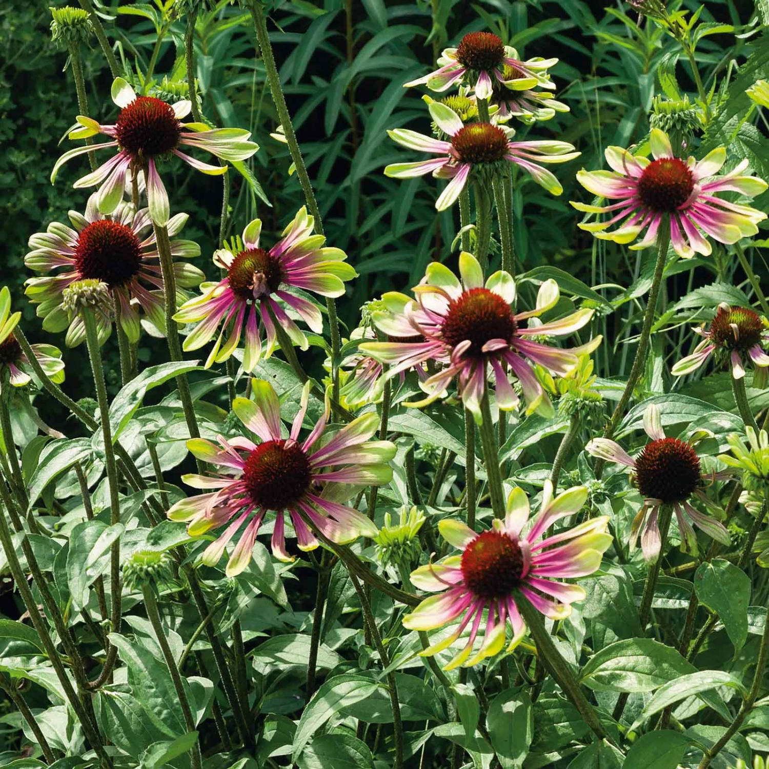 With all the notable virtues of purple coneflower, this extraordinary variety, Green Twister, comes in a lovely combination of colors not often seen in the garden. Lime green petal tips transition to a soft pink as it reaches the center. Flat, horizonal petals around the pronounced cone provide that stable landing pad for pollinators as butterflies, bees, and other beneficial insects flock to its beauty. Blooming from mid to late summer on upright, sturdy stalks perfect to cut and arrange indoors.